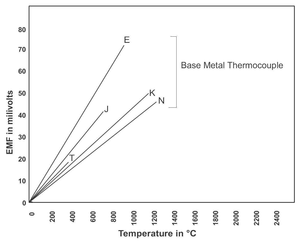 Thermocouple temperature sensors can be made with various conductor materials for different temperature ranges and output characteristics.